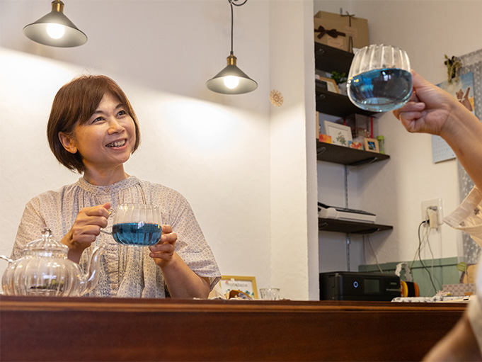 自分も元気になる、みんなにも元気になってもらいたいと自分なりに自分らしいハーブティーをブレンドし、ここにしかない心に寄り添う一杯のハーブティーを販売しています。