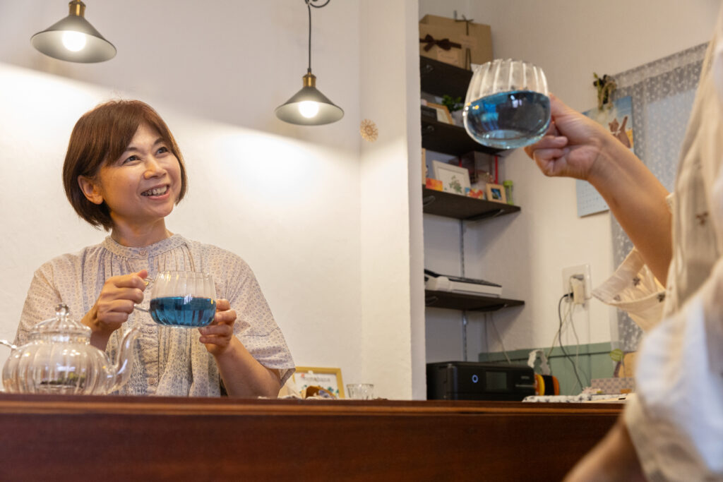 自分も元気になる、みんなにも元気になってもらいたいと自分なりに自分らしいハーブティーをブレンドし、ここにしかない心に寄り添う一杯のハーブティーを販売している。
