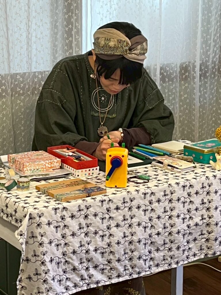 machiさんが描いてくれている間、お菓子とハーブティーで、心地よい時間を。