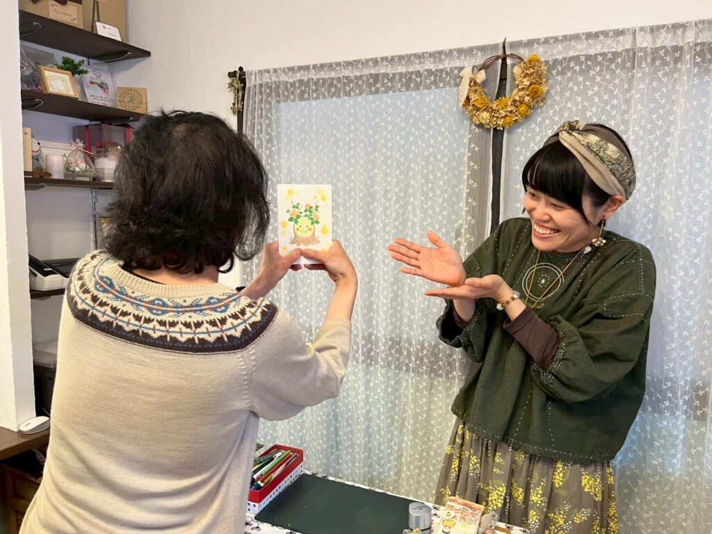 machiさんの優しい色鉛筆画であなた自身が木の妖精だったらというイメージをポストカードに描いてくれます。